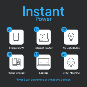 Versatility shines with four charging options: AC, car, solar, and USB-C. The adaptable 300W AC output (expandable to 600W) suits various electronics, making it great for charging home appliances or on the next adventure. All this comes in a 30% lighter design for greater portability. For emergencies, the >30ms switchover provides uninterrupted power, making RIVER 2 a dependable backup.